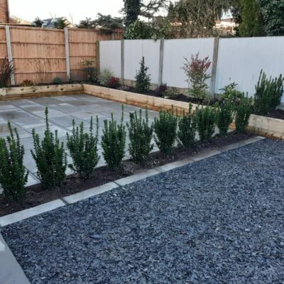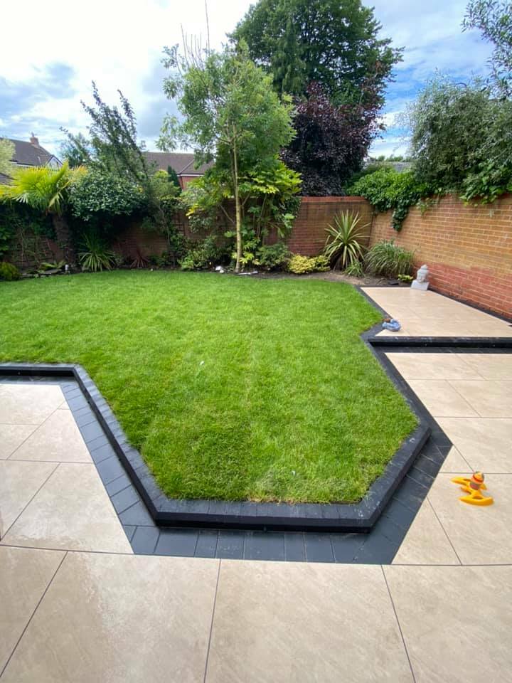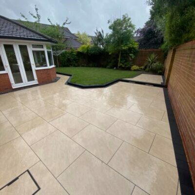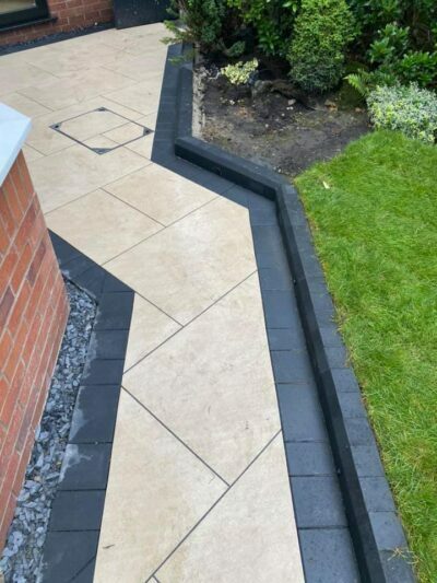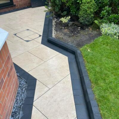 . Paving: Patios, and paving using materials like porcelain, Indian stone, concrete flags, and more.